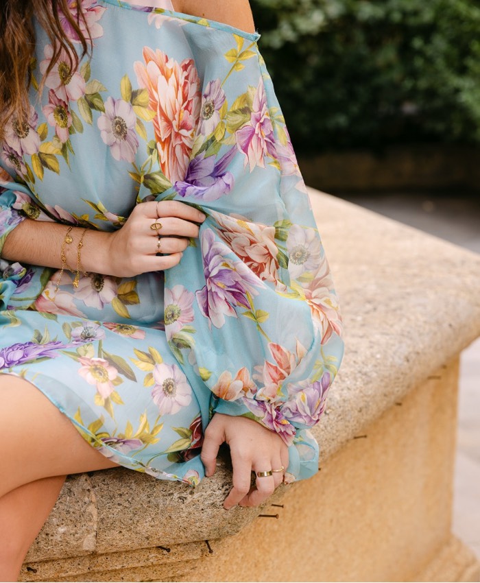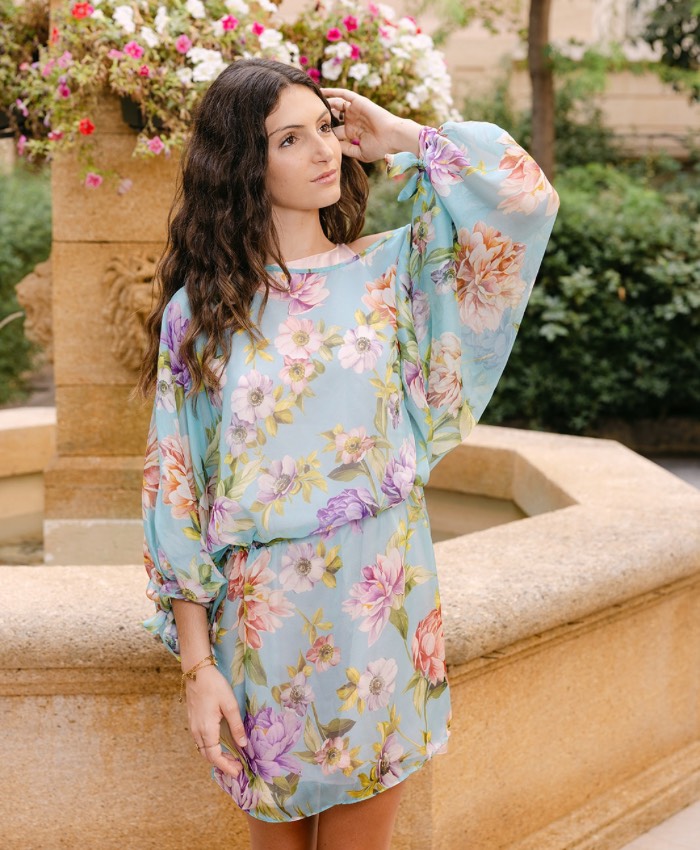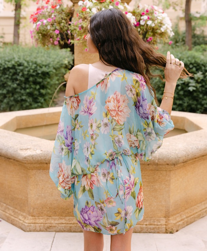 apporte une sensualité discrète. Réalisée en mousseline florale, elle se